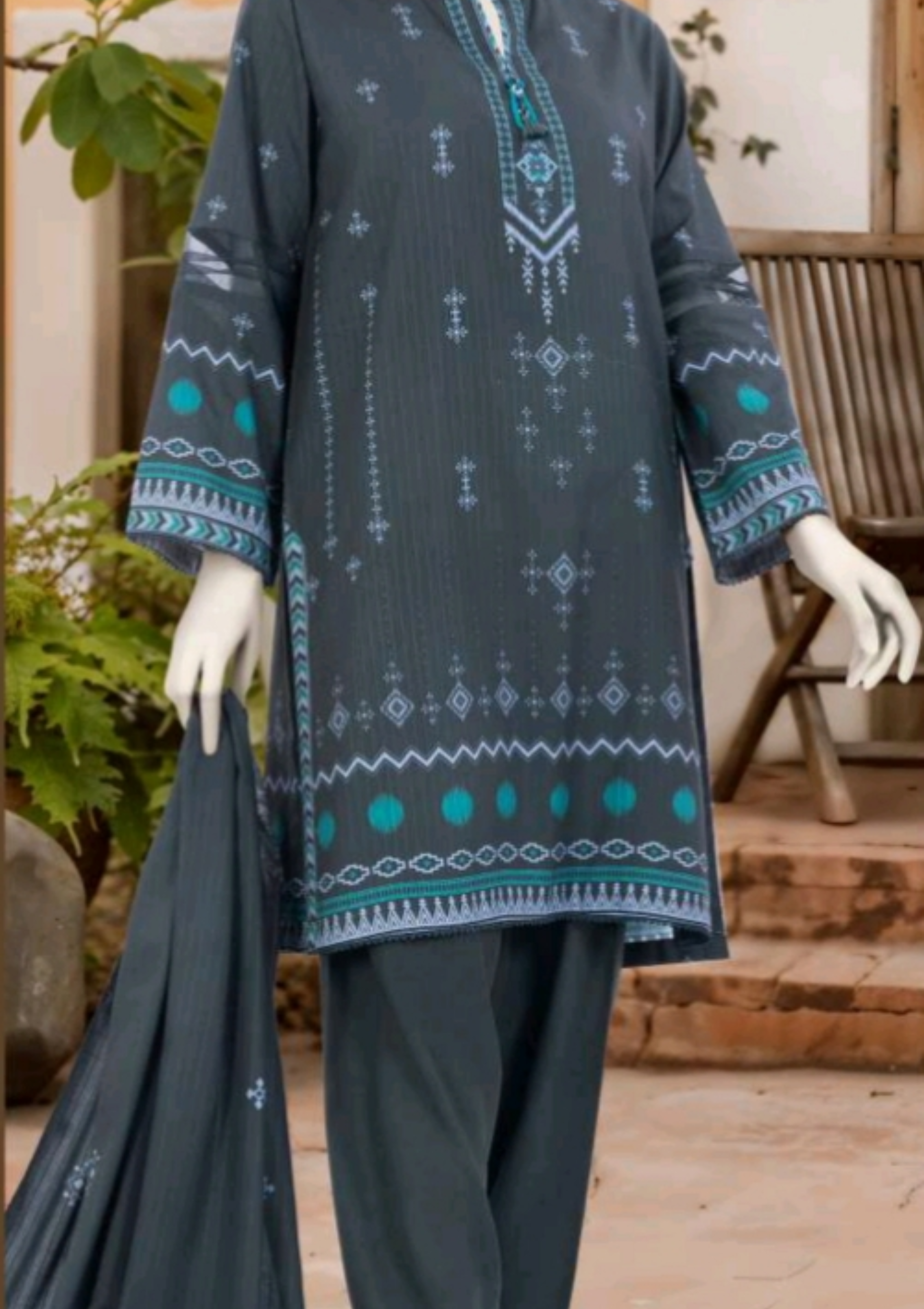 Bin Inam Printed Jacquard 3pc with Zari Voil Dupatta D3