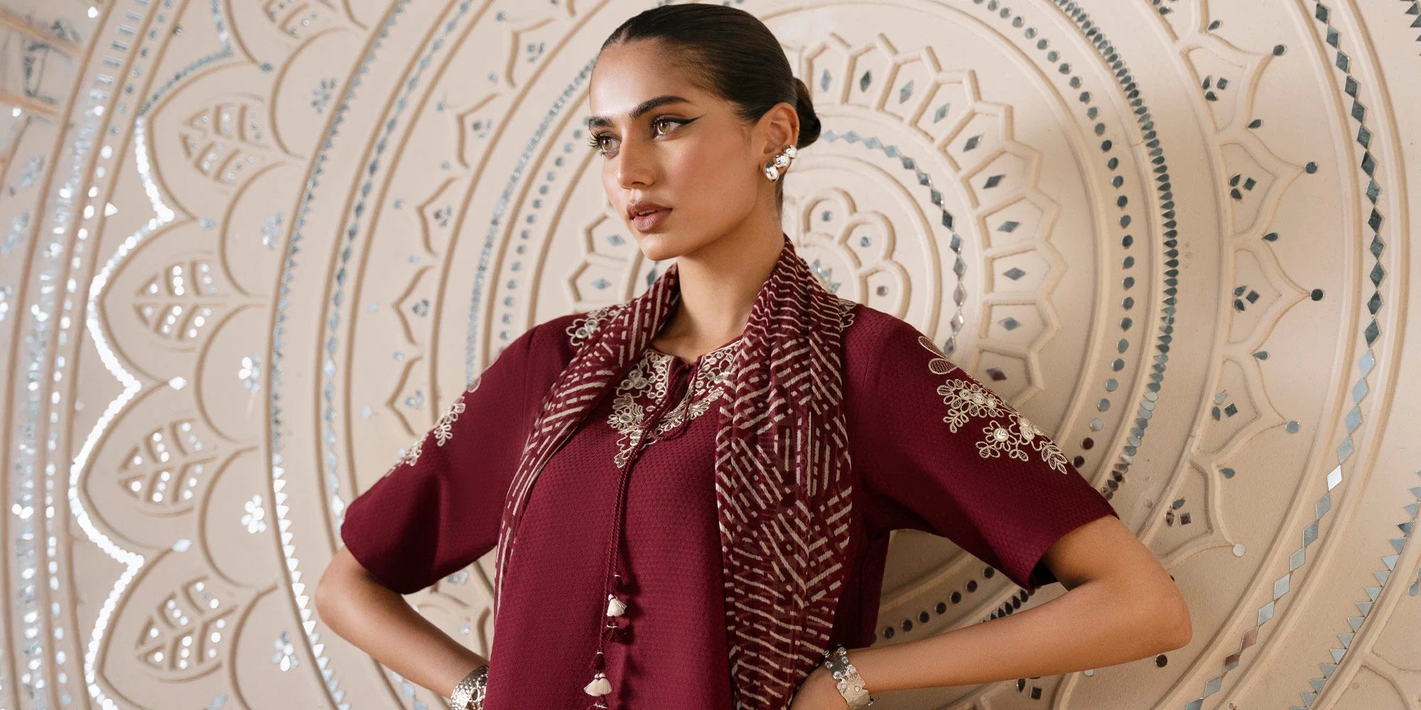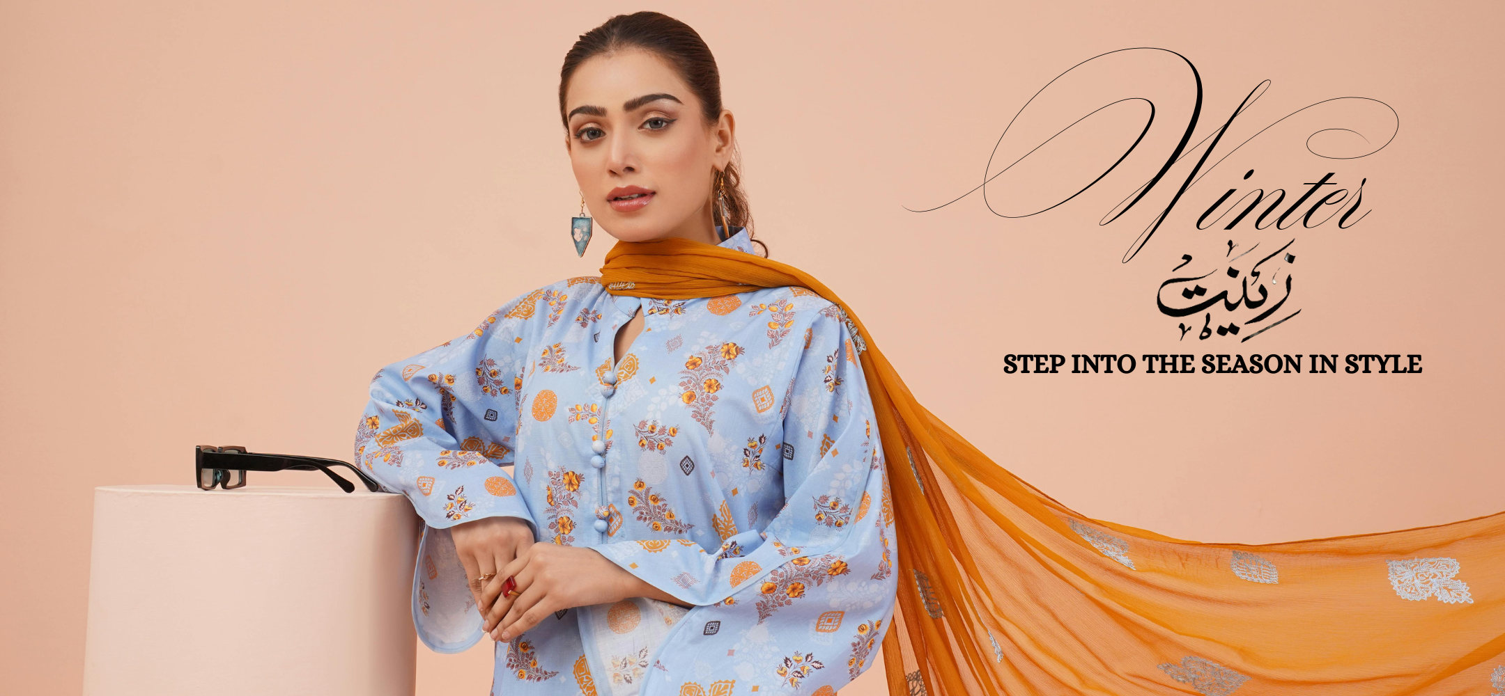 Bin Inam Printed Jacquard 3pc with Zari Voil Dupatta D1