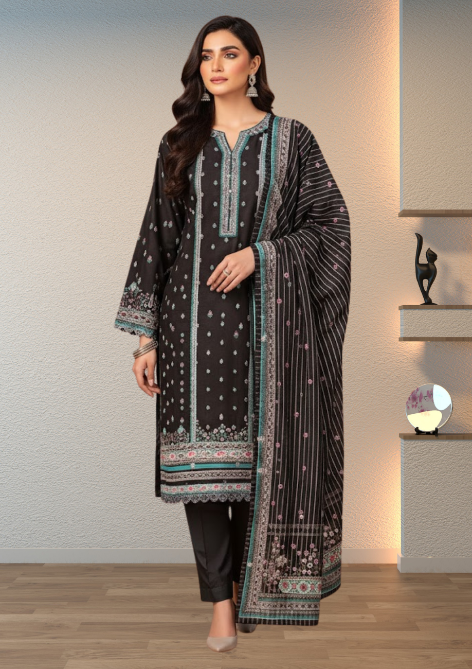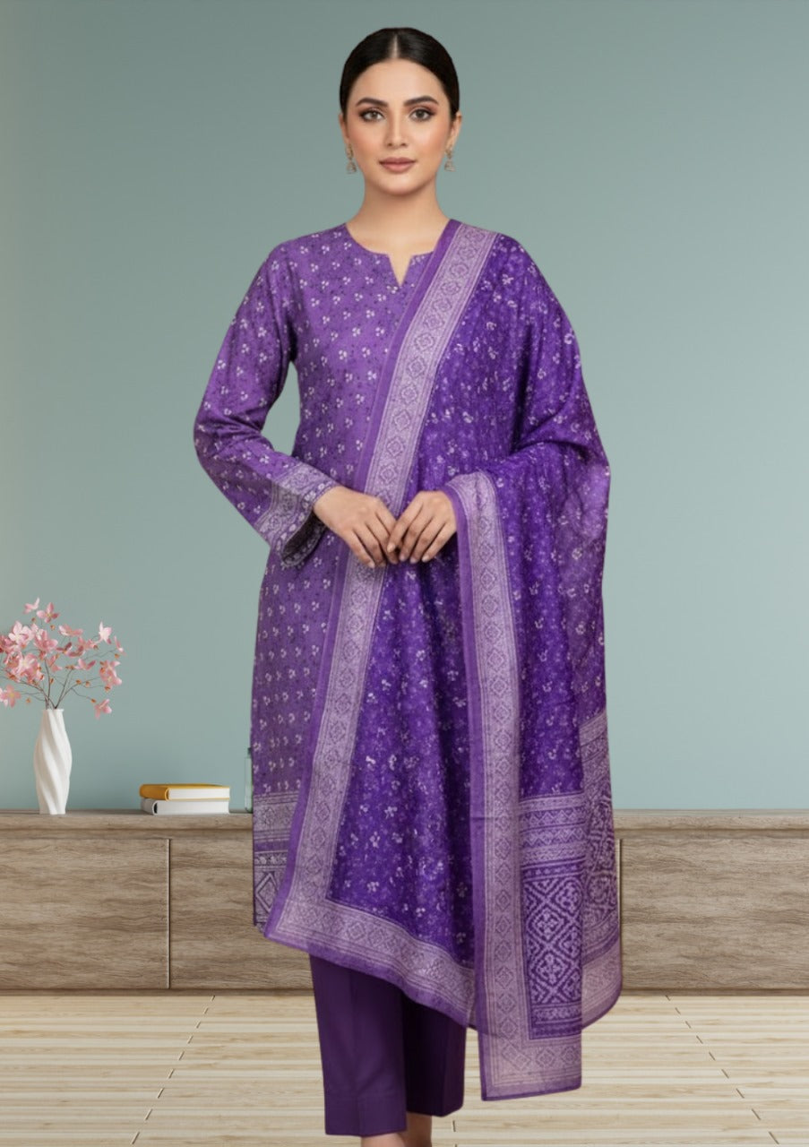 Bin Inam Printed Jacquard 3pc with Zari Voil Dupatta D3