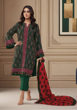 This beautifully designed 3-piece unstitched suit includes a printed shirt, matching trouser, and a graceful dupatta, making it perfect for daily wear, casual outings, and semi-formal occasions.