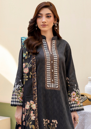 This beautifully designed printed lawn 3pc suit features a stylish printed shirt, a matching trouser, and a graceful dupatta for a complete, refined look. Perfect for casual brunches, daytime gatherings, and summer strolls, this suit reflects the high-quality craftsmanship and elegant design of the Bininam Salina Collection.