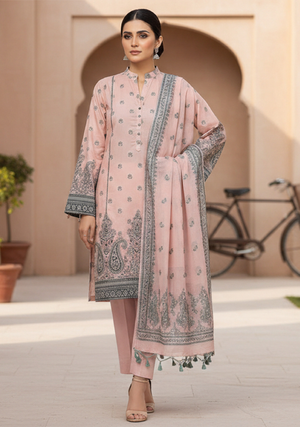 The suit includes a perfectly coordinated printed dupatta that enhances the overall look with grace and charm, along with a finely tailored trouser that ensures a sleek and flattering fit. Whether for casual outings, family gatherings, or semi-formal occasions, this 3-piece set delivers a flawless blend of tradition and contemporary fashion.
