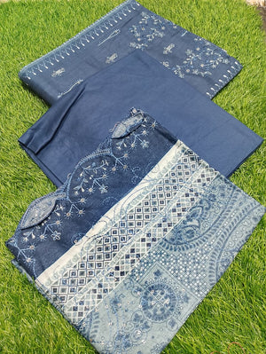 • 3 Piece Suit (Embroidered Shirt + Trouser + Dupatta)