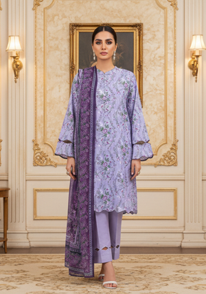 This beautifully designed 3-piece set includes a finely printed shirt with intricate floral and traditional patterns, a matching printed trouser, and a stylish dupatta that completes the look with grace. The vibrant colors and detailed prints make it ideal for casual wear, family gatherings, and festive occasions.