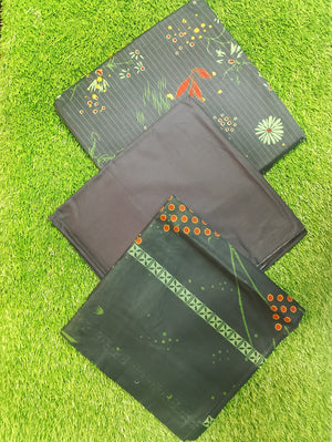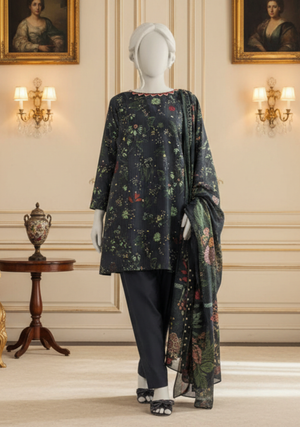 This beautifully designed 3-piece set includes a finely printed shirt with intricate floral and traditional patterns, a matching printed trouser, and a stylish dupatta that completes the look with grace. The vibrant colors and detailed prints make it ideal for casual wear, family gatherings, and festive occasions.