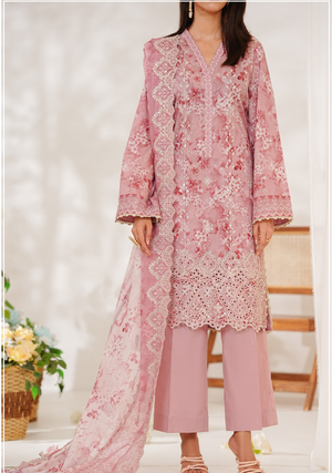 The delicate chikankari embroidery adds a touch of heritage craftsmanship, while the lightweight lawn fabric ensures breathability and comfort throughout the day. Perfect for festive occasions, formal gatherings, and elegant daytime wear, this suit reflects VS-Zynah’s commitment to luxury design and fine quality.