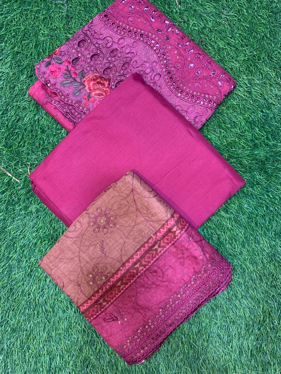 Complete 3PC suit: embroidered shirt, dupatta, and trousers