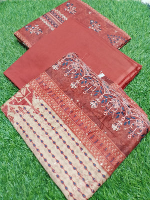 • 3 Piece Suit (Embroidered Shirt + Trouser + Dupatta)