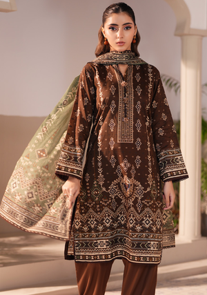 This beautifully designed 3-piece set includes a stylish printed shirt, matching trouser, and a graceful dupatta, creating a complete and refined look. The premium jacquard weave enhances the richness of the fabric, while the vibrant digital print adds a modern and fashionable appeal.