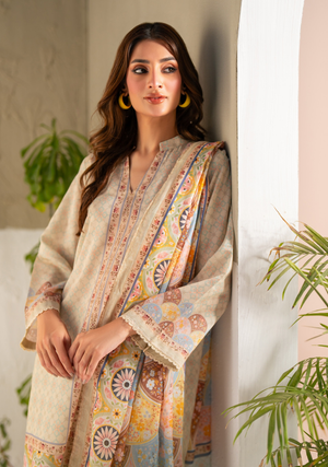 Enhance your seasonal wardrobe with the Salina Ladies 3PC Printed Lawn Suit, designed for women who value elegance, comfort, and premium detailing. This stylish three-piece ensemble features a beautifully crafted printed lawn chamki shirt, paired with matching trousers and a soft, flowy voil dupatta, creating a complete and graceful look for every occasion.