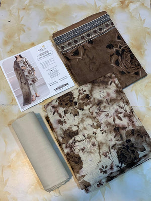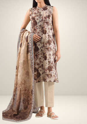 Ladies 3-Piece Printed Suit – Cotton Khaddar by SAYA