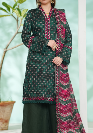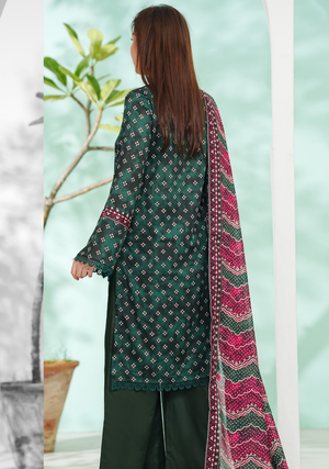This beautifully crafted 3-piece set includes a stylish printed shirt, matching trouser, and a graceful dupatta, creating a complete and fashionable look. The vibrant digital prints and fine detailing enhance its charm, while the premium fabric ensures all-day comfort in warm weather.