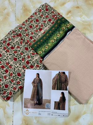 Step into elegance with Agha Noor’s stunning 3-piece ladies suit, crafted from premium Printed Khaddar fabric. This beautifully designed outfit includes a 3-meter shirt, 2.5-meter trouser, and a 2.5-meter dupatta, offering both comfort and sophistication. The soft, breathable Khaddar fabric ensures warmth and durability, making it ideal for winter wear. With its vibrant prints and graceful design, this ensemble perfectly blends tradition and modern style — a timeless addition to your wardrobe.
