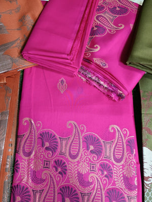- Perfectly Coordinated 3-Piece Ensemble — includes a stunning jacquard-printed shirt that captivates, a gracefully flowing printed dupatta, and a precisely tailored trouser that flatters every silhouette.