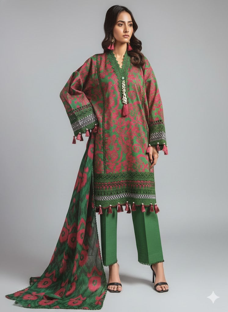 Perfect for casual outings, office wear, or festive gatherings, this suit blends elegance with everyday comfort. The premium lawn quality makes it ideal for Pakistan’s warm weather, while the unique prints give you a stylish .