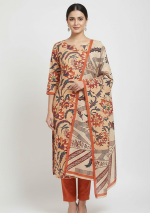 This beautiful 3-piece set features a finely printed shirt with sophisticated patterns, a matching printed trouser, and a graceful dupatta that enhances the overall look. The vibrant colors and detailed design make it ideal for casual wear, family gatherings, festive occasions, and everyday fashion.