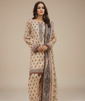 Bring color, charm, and comfort to your summer wardrobe with BIN INAM’s Rangoli Collection. This elegant 3-piece unstitched lawn suit features a vibrant Printed Lawn Shirt, paired with a Printed Lawn Voil Dupatta for a breezy, luxurious feel. Completing the look is a beautifully crafted Printed Trouser / Dyed Trouser option, giving you the freedom to style it your way.