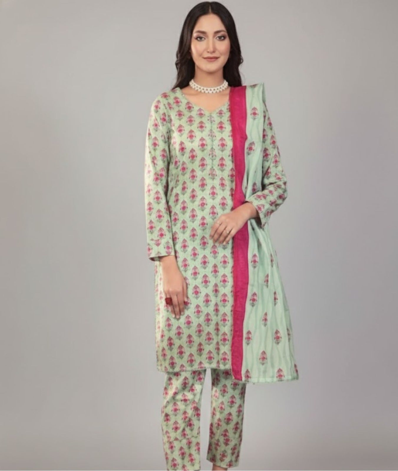 Designed for today’s modern woman, this outfit blends premium quality lawn fabric, long-lasting prints, and eye-catching Rangoli-inspired patterns. Perfect for daily wear, gatherings, and festive summer days.