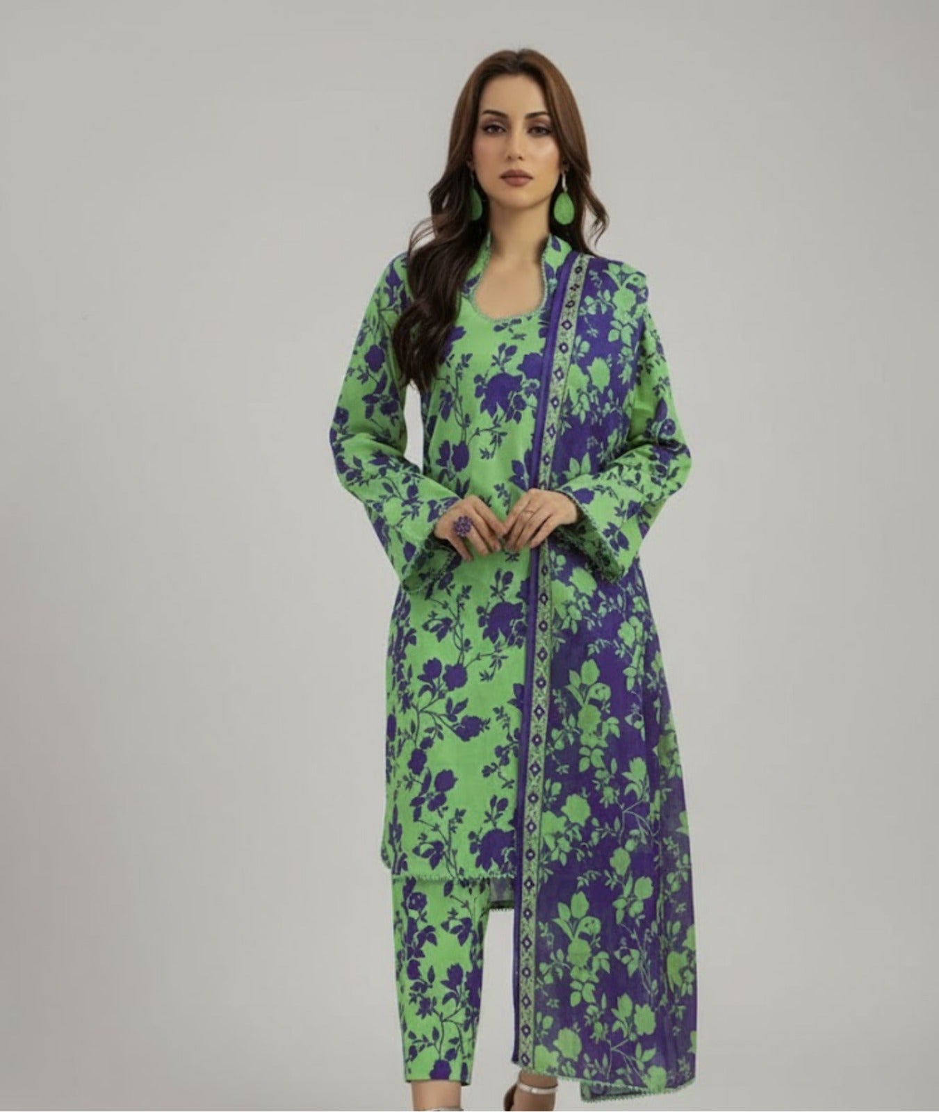 Designed for today’s modern woman, this outfit blends premium quality lawn fabric, long-lasting prints, and eye-catching Rangoli-inspired patterns. Perfect for daily wear, gatherings, and festive summer days.