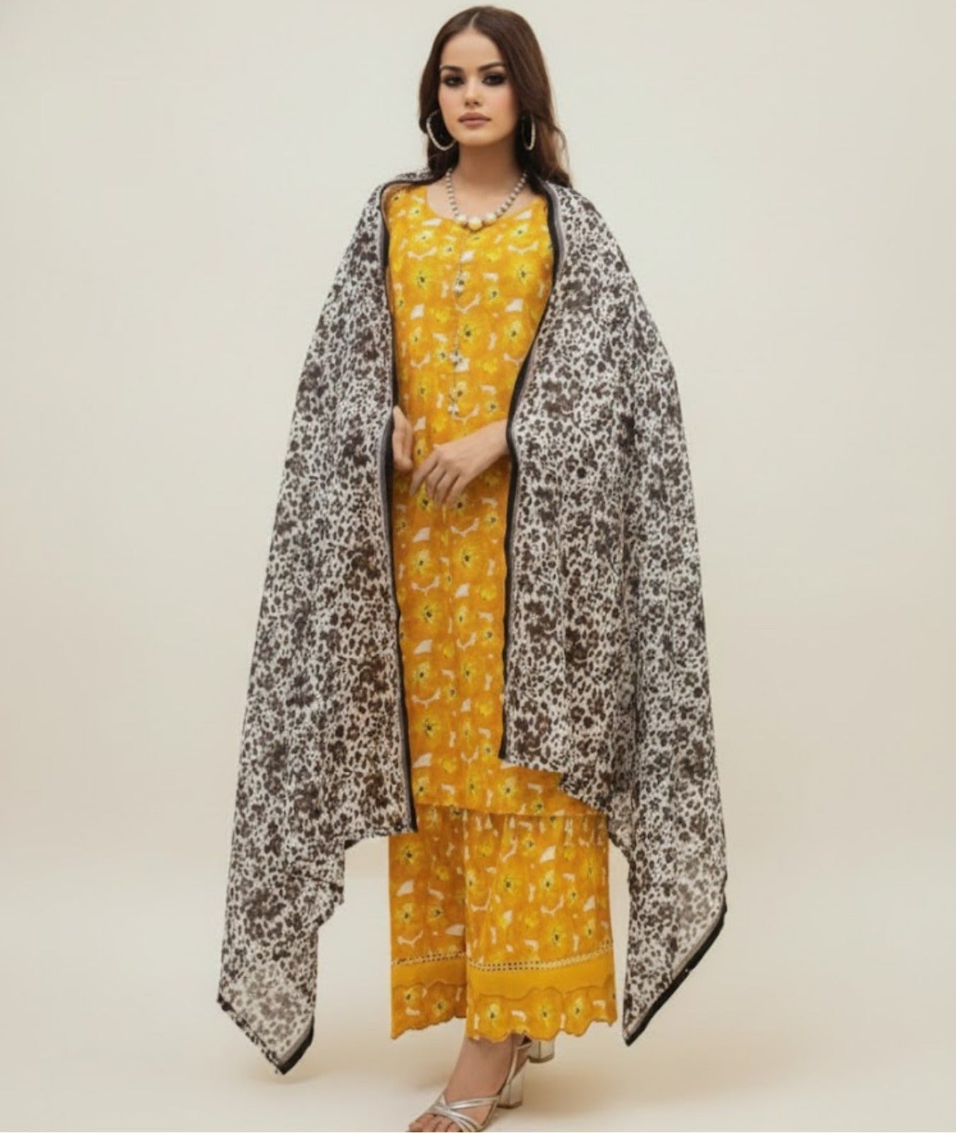 Designed for today’s modern woman, this outfit blends premium quality lawn fabric, long-lasting prints, and eye-catching Rangoli-inspired patterns. Perfect for daily wear, gatherings, and festive summer days.
