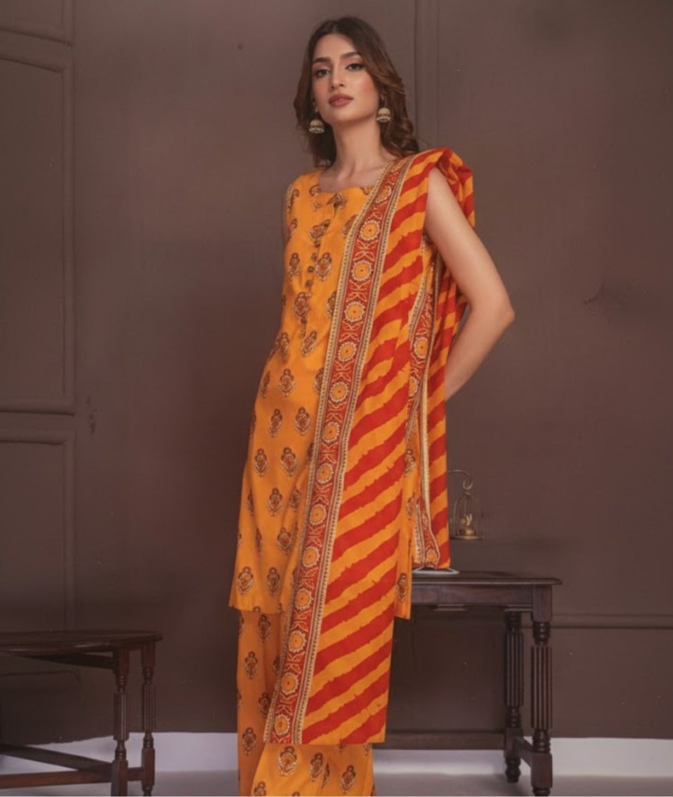 Designed for today’s modern woman, this outfit blends premium quality lawn fabric, long-lasting prints, and eye-catching Rangoli-inspired patterns. Perfect for daily wear, gatherings, and festive summer days.