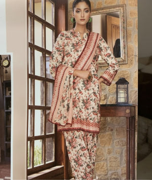 Bring color, charm, and comfort to your summer wardrobe with BIN INAM’s Rangoli Collection. This elegant 3-piece unstitched lawn suit features a vibrant Printed Lawn Shirt, paired with a Printed Lawn Voil Dupatta for a breezy, luxurious feel. Completing the look is a beautifully crafted Printed Trouser / Dyed Trouser option, giving you the freedom to style it your way.
