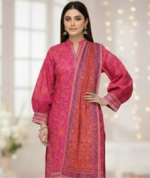 Unveil timeless elegance with BIN INAM’s Reet Collection, designed for women who love style with sophistication. This premium 3-piece unstitched ensemble features: