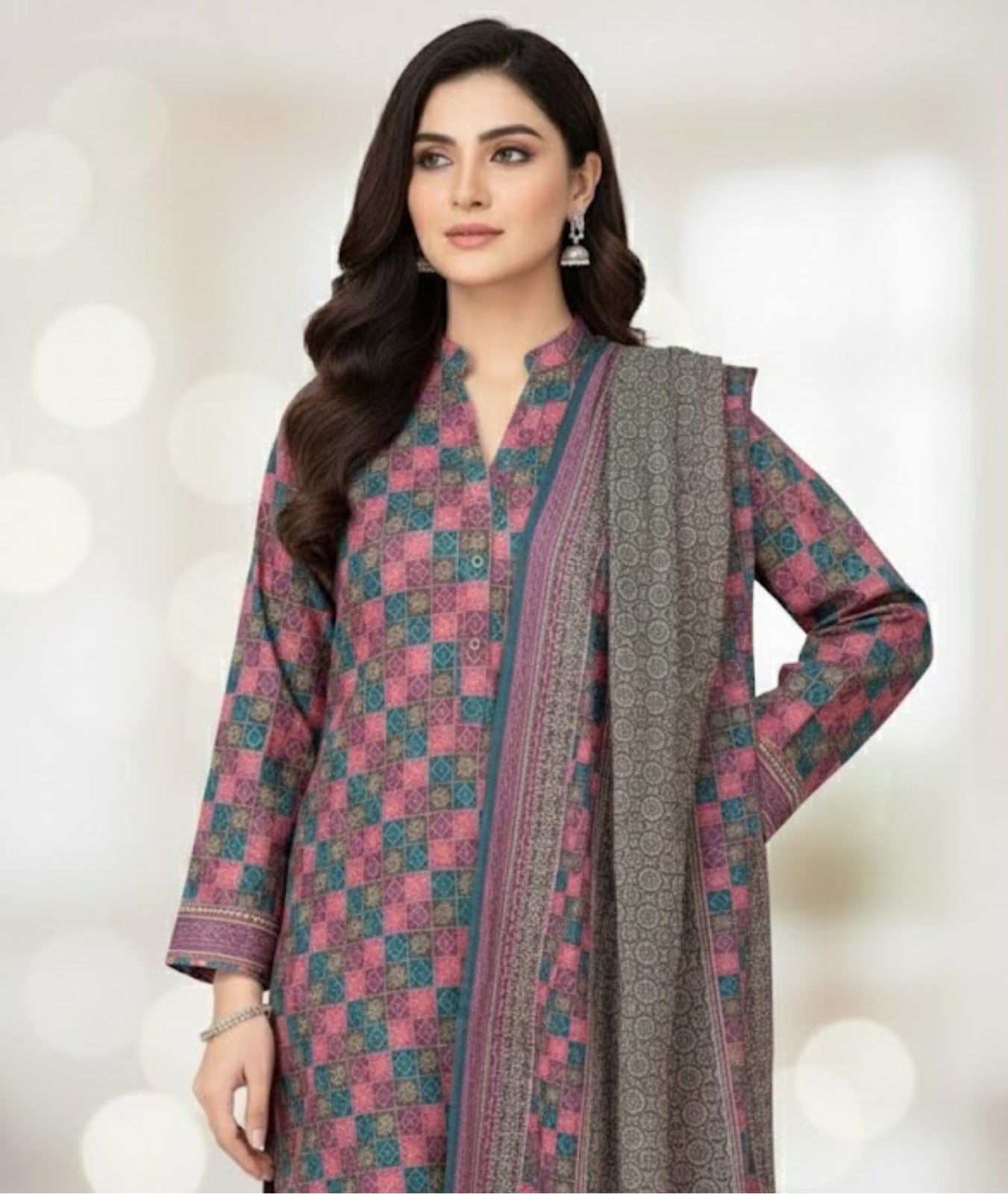 Unveil timeless elegance with BIN INAM’s Reet Collection, designed for women who love style with sophistication. This premium 3-piece unstitched ensemble features: