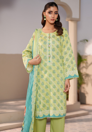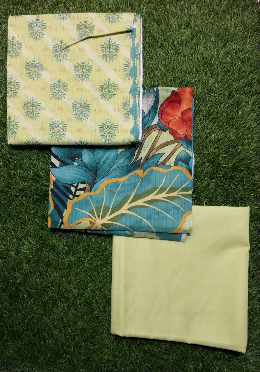 This beautifully designed 3-piece set includes a stylish printed shirt, matching trouser, and a graceful dupatta, creating a complete and refined look. The premium jacquard weave enhances the richness of the fabric, while the vibrant digital print adds a modern and fashionable appeal.