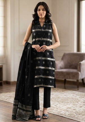 This beautifully crafted jaquard 3pc suit includes a delicately patterned shirt, a matching trouser, and a coordinated dupatta for a complete, sophisticated look. Perfect for casual day outings, smart summer wear, and festive daytime gatherings, it reflects quality craftsmanship and timeless design.