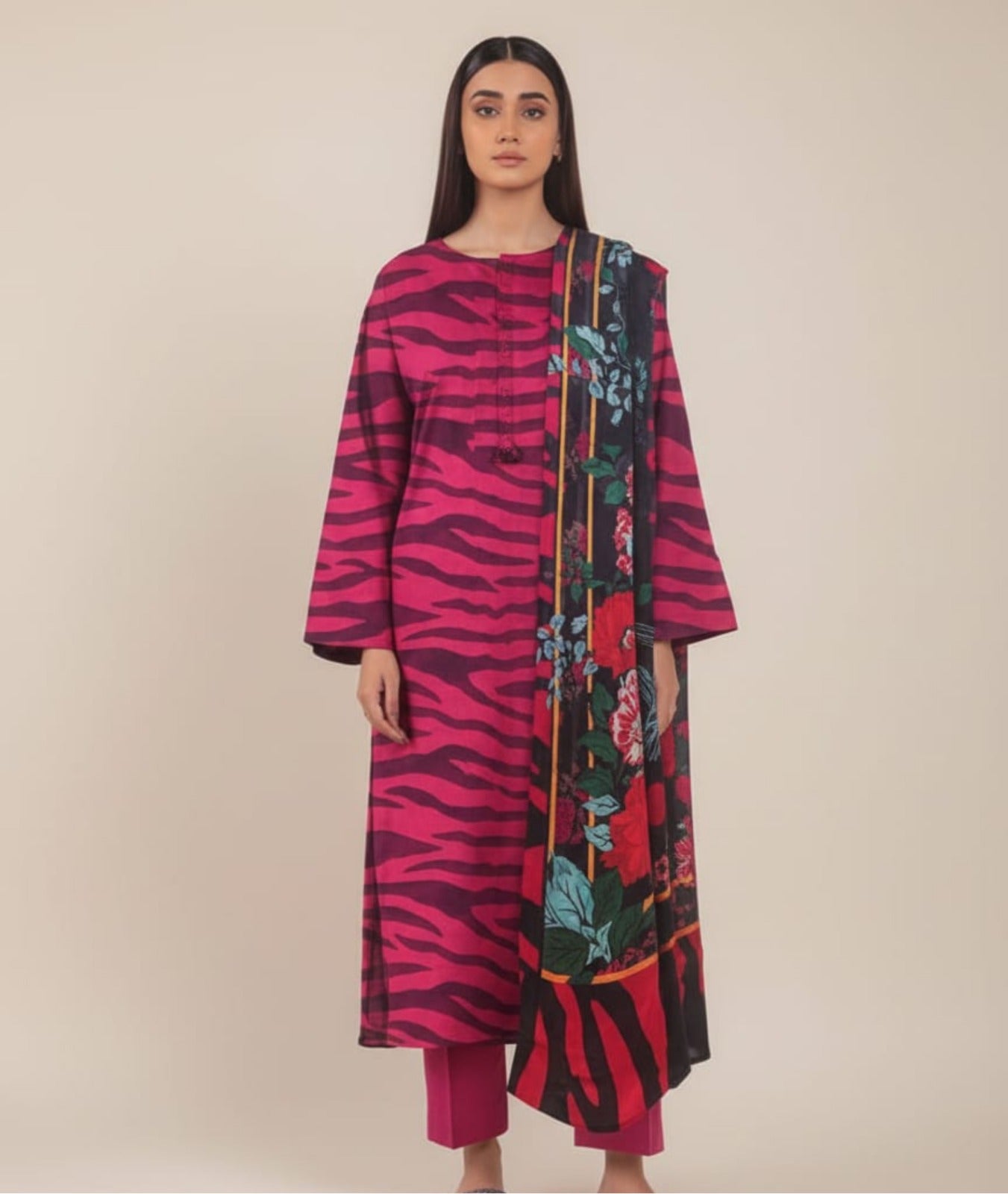Bring timeless elegance to your wardrobe with BIN INAM’s Shakeera Collection, designed for women who love classic beauty with a modern twist. This 3-piece unstitched suit features: